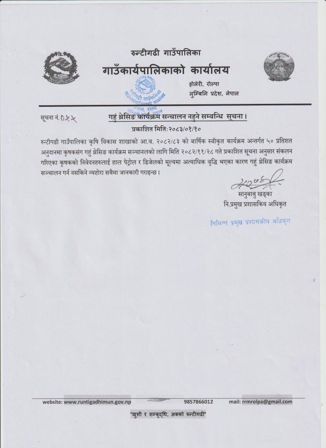 गहु थ्रेुसिङ कार्यक्रम सन्चालन नहुने सम्बन्धी सूचना ।