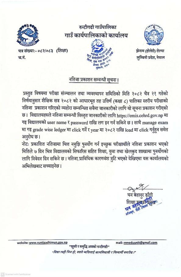 नतिजा प्रकाशन सम्बन्धी सूचना ।