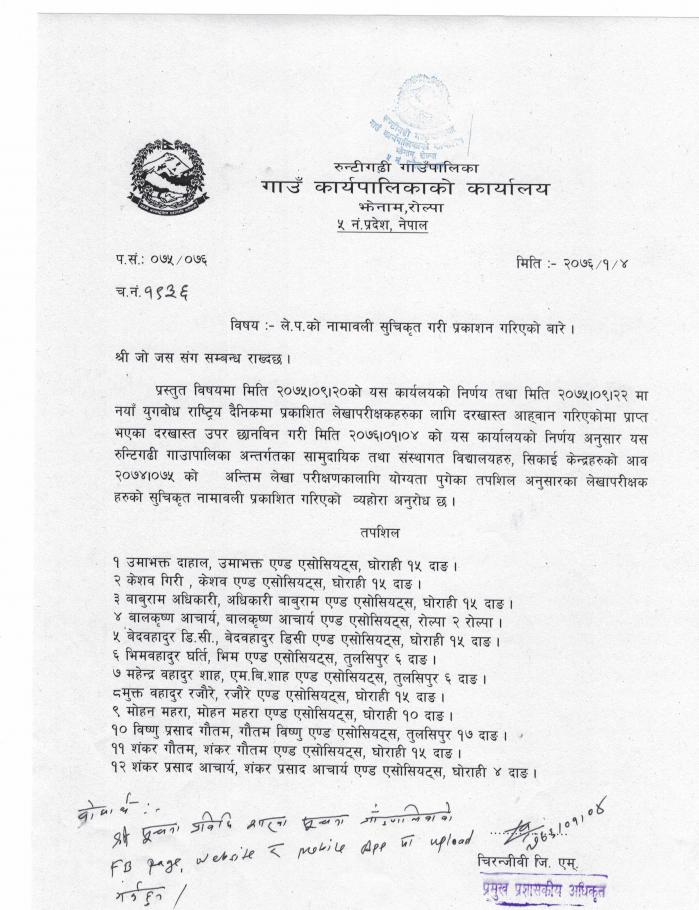 ले.प.को नामावली सुचिकृत गरी प्रकाशन गरिएको बारे ।