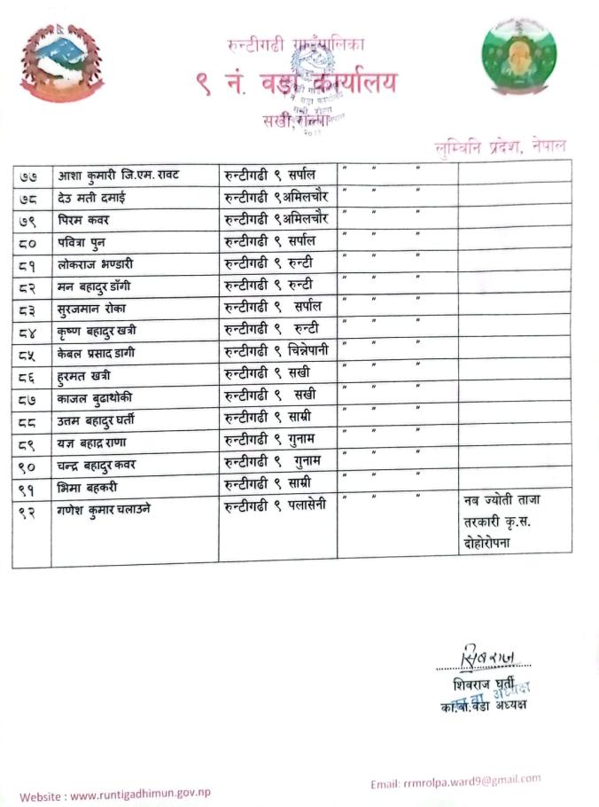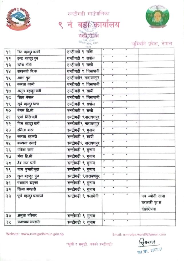 आ.व. २०८२।८३ को रुन्टीगढी गाउँपालिका वडा न ९ को बजेट तथा कार्यक्रम