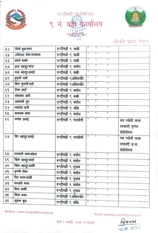 » वडा नं. ९ को कृषिक छनोट सम्बन्धी सूचना ।