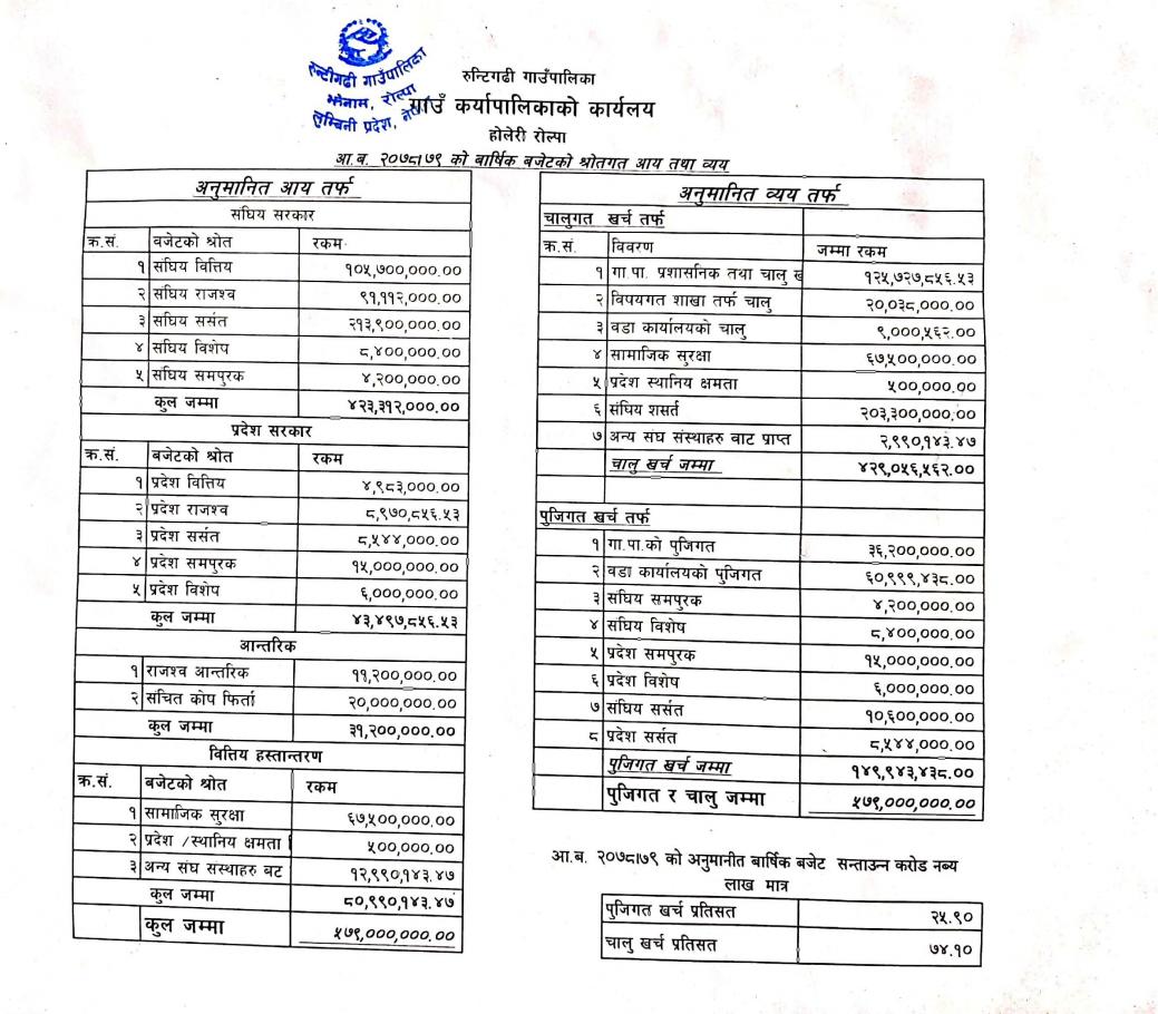 आ.व. २०८२।८३ को रुन्टीगढी गाउँपालिकाको बार्षिक बजेट तथा कार्यक्रम