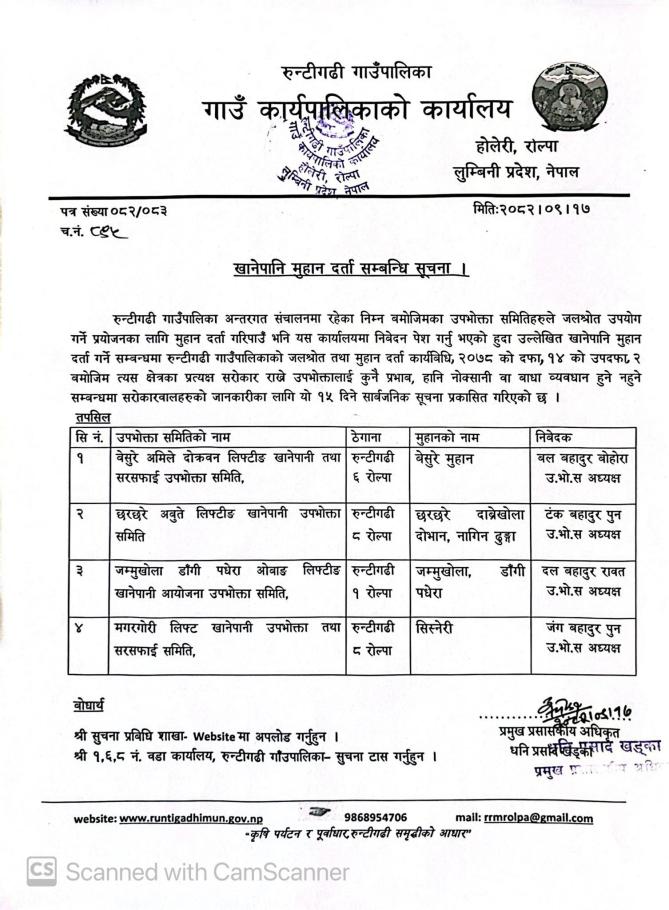 » खानेपानि मुहान दर्ता सम्बन्धी सूचना ।