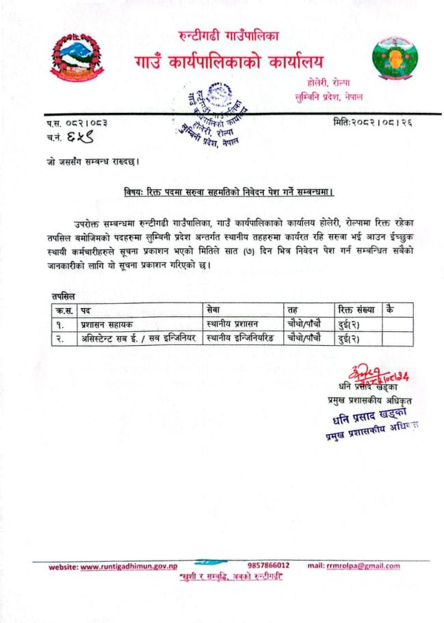 » रिक्त पदमा सरुवा सहमतिको निबेदन पेश गर्ने सम्बन्धमा |