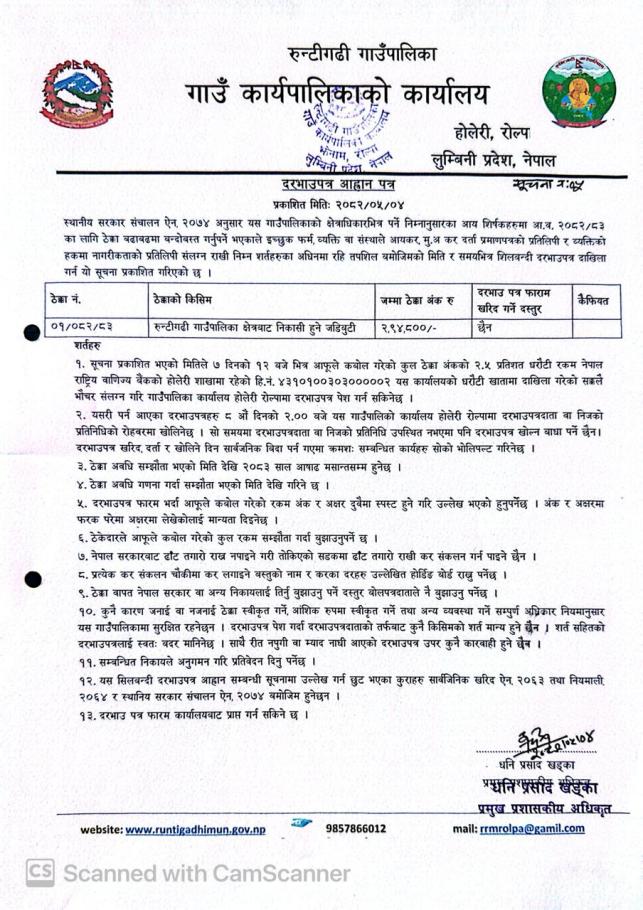 रुन्टीगढी गाउँपालिका क्षेत्रबाट निकासी हुने जडिबुटि सम्बन्धि सूचना ।