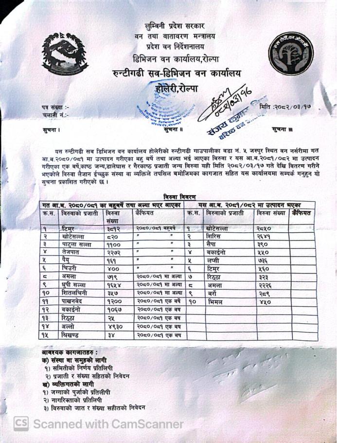 रुन्टीगढी सव डिभिजन वन कार्यालयको सूचना ।