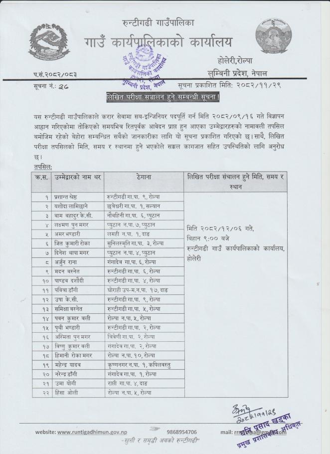 लिखित परीक्षा सञ्चालन सम्बन्धी सूचना ।