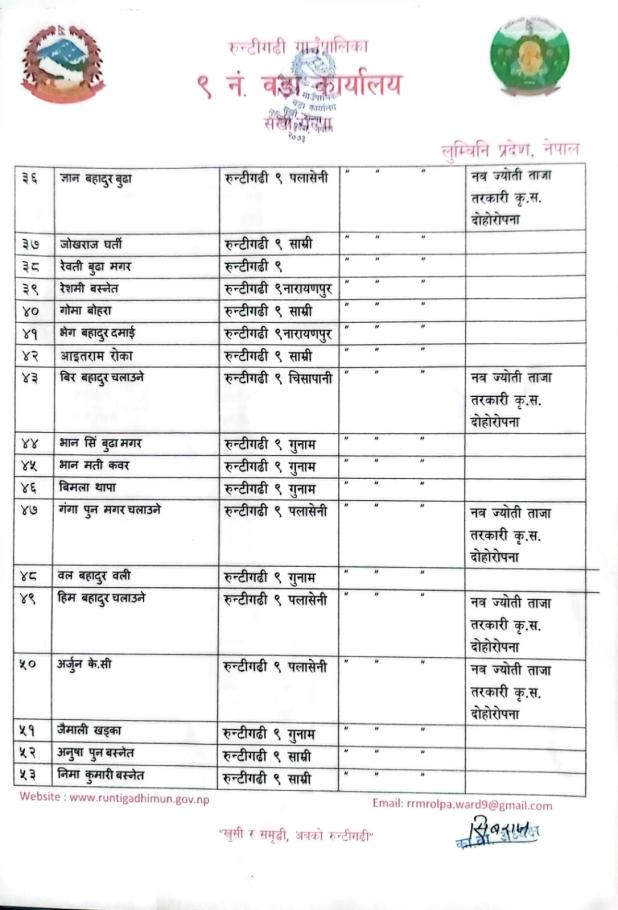 वडा नं. ९ को कृषिक छनोट सम्बन्धी सूचना ।