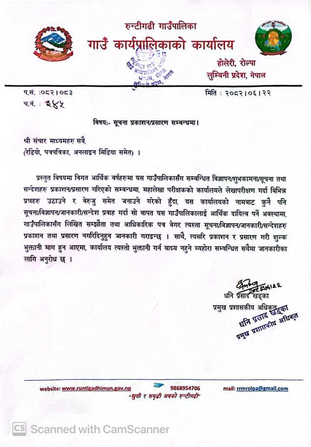 आ.व. २०८२।८३ को रुन्टीगढी गाउँपालिकाको बार्षिक बजेट तथा कार्यक्रम