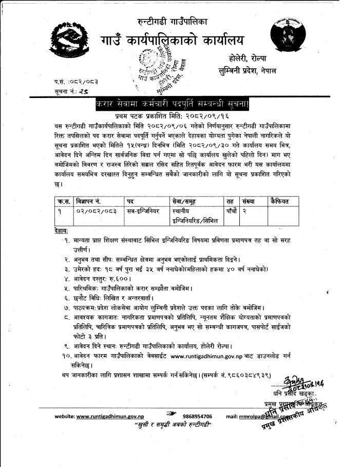 सेवा करारमा कर्मचारी पदपूर्ती सम्बन्धी सूचना ।